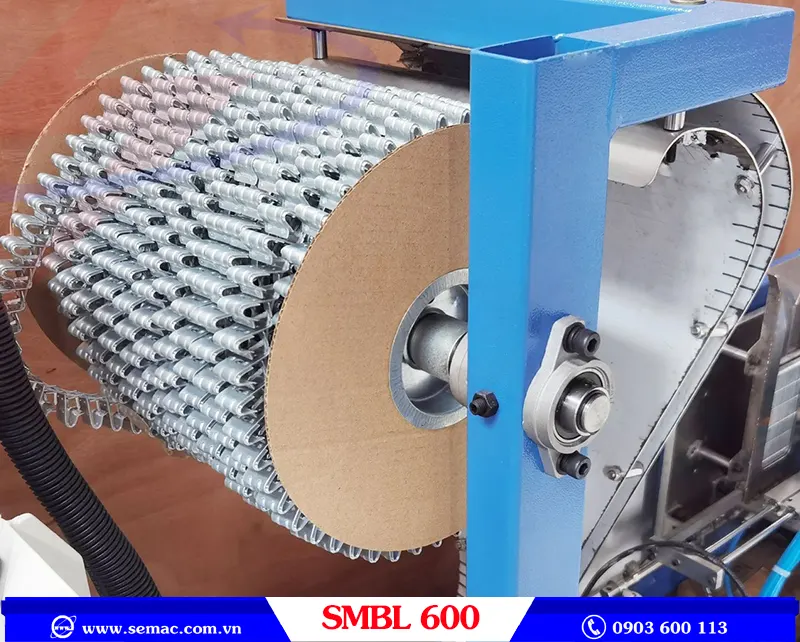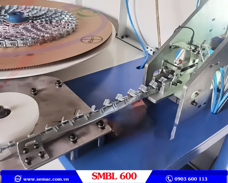 - Máy bắn ghim kẹp liên kết lò xo đàn hồi được thiết lập hệ thống cấp phôi tự động, thực hiện gia công liên tục.