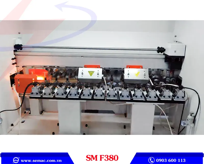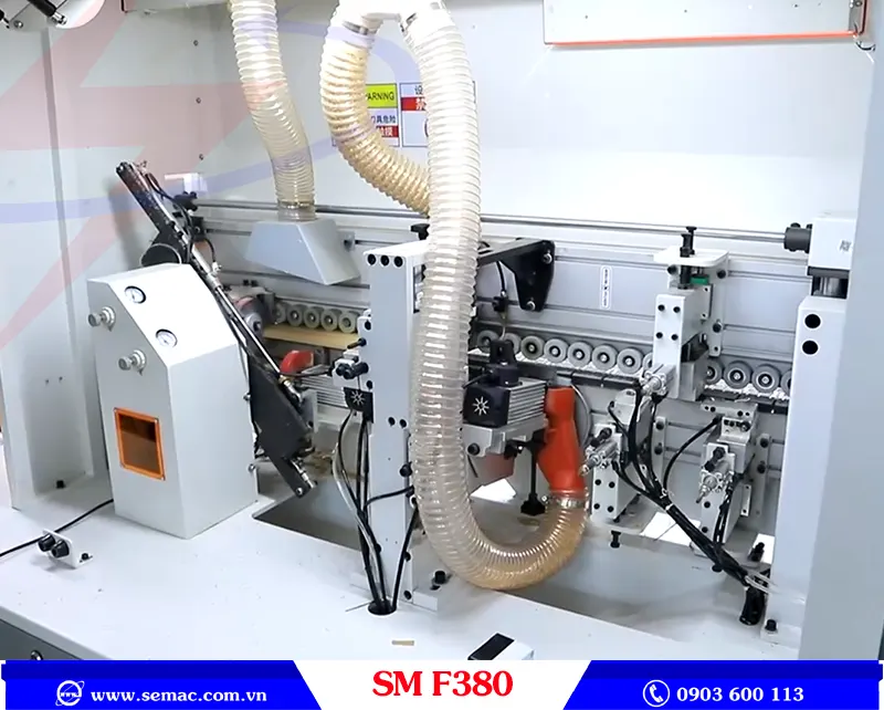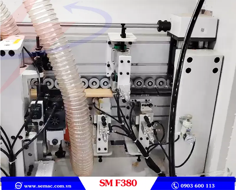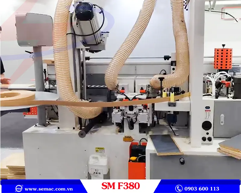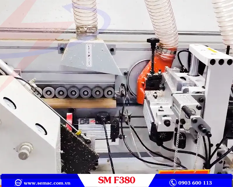 - Máy chuyên gia công được nhiều biên dạng dán cạnh như: 45 độ, 1/2 cung tròn và 1/4 cung tròn.