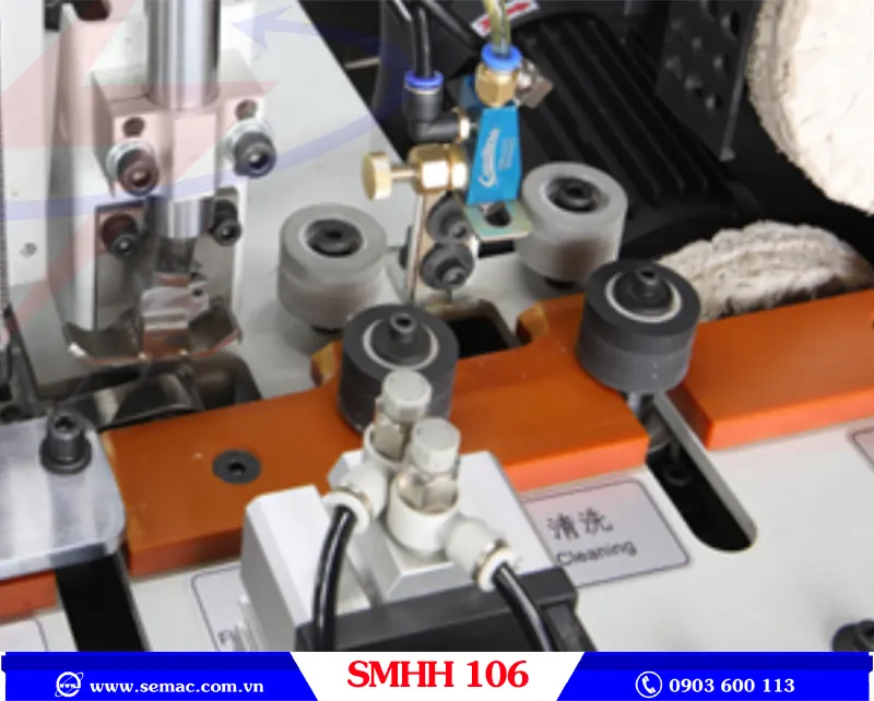 - Máy dán cạnh tự dộng nẹp nhỏ được thiết kế cụm phay cạnh trước khi gia công, giúp cạnh chuẩn.