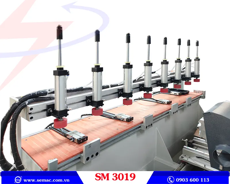 - Hệ thống ben kẹp phôi chắc chắn giúp giữ chặt phôi trong thời gian gia công.