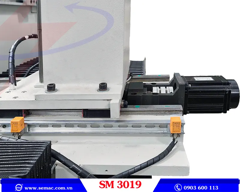 - Máy được thiết kế với độ sâu gia công 50mm, chiều dài phôi 2000mm.
